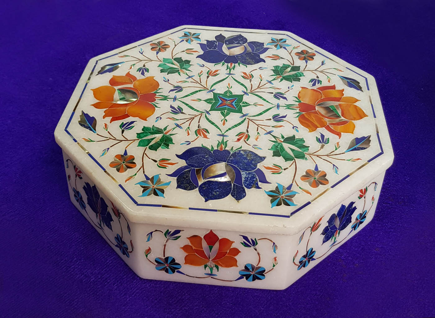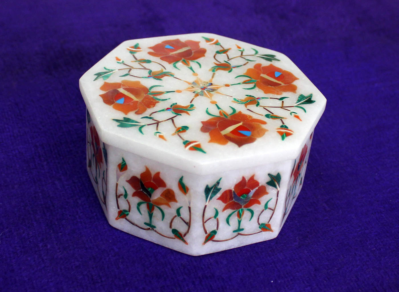 Taj Mahal.... One among the 7 wonders of the World, was made of White Marble and decorated with an art called Inlay or Pietra Dura. HMI (Handicraft Marble Industries), is an organization, dedicated to keep alive this Art of Inlay, which was used to decore the magnificent Taj Mahal.more...